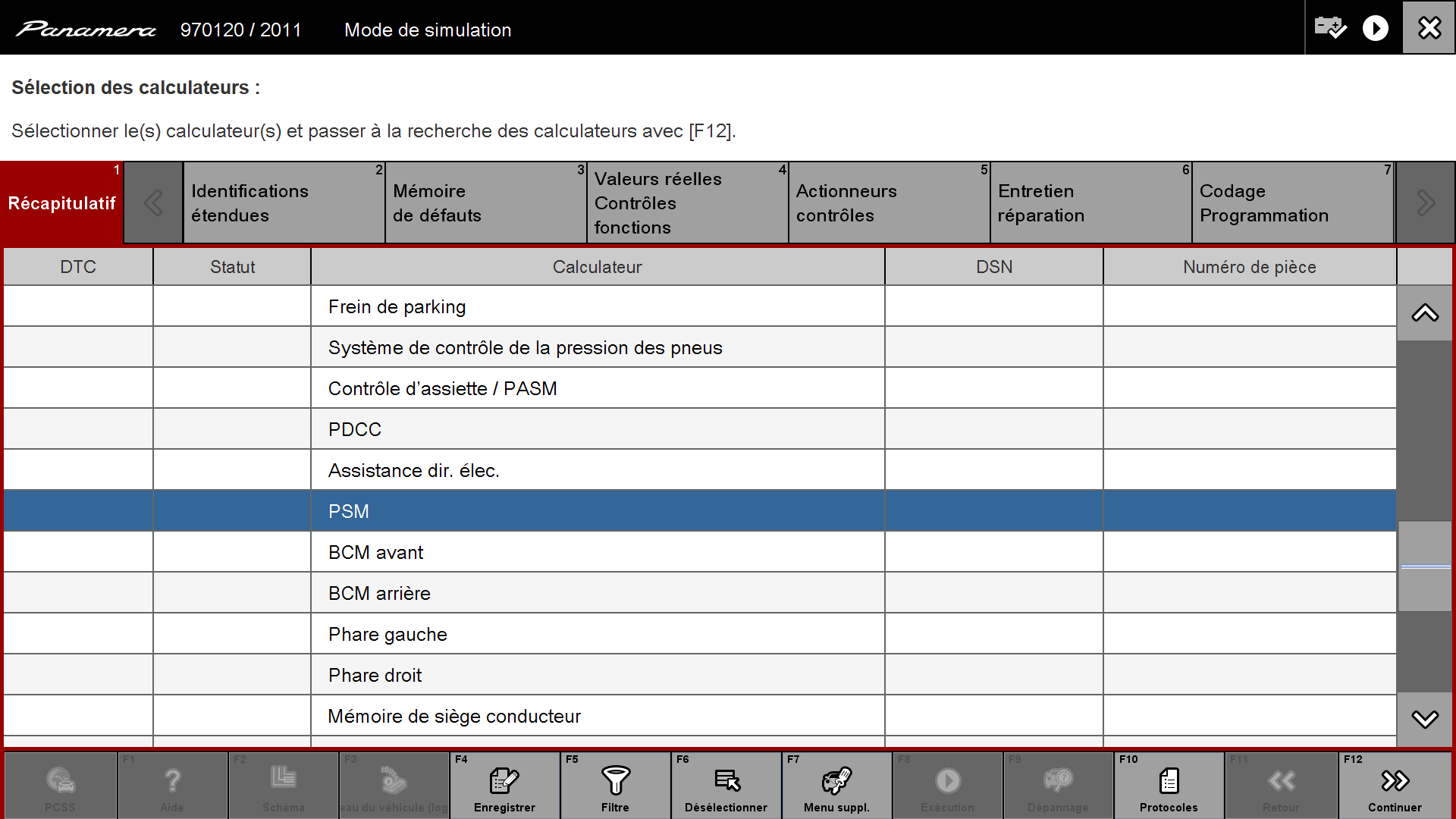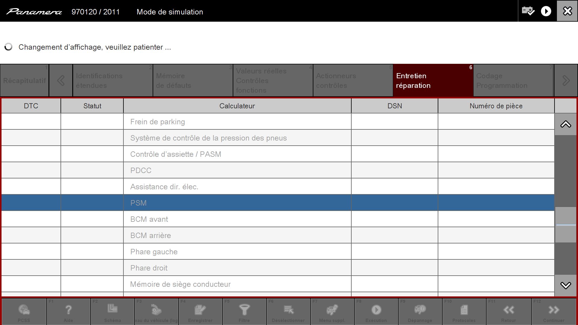 Arrivé sur le récapitulatif des calculateurs on clique sur PSM et on clique sur "Entretien réparation" :